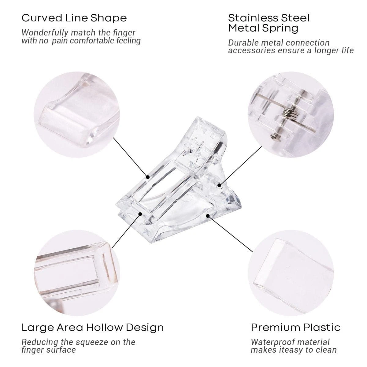 - Easy to Use&Comfortable: The clip is designed according to the finger of the person. These transparent manicure clips are safe to use,they will not make you feel too tight or too loose.
