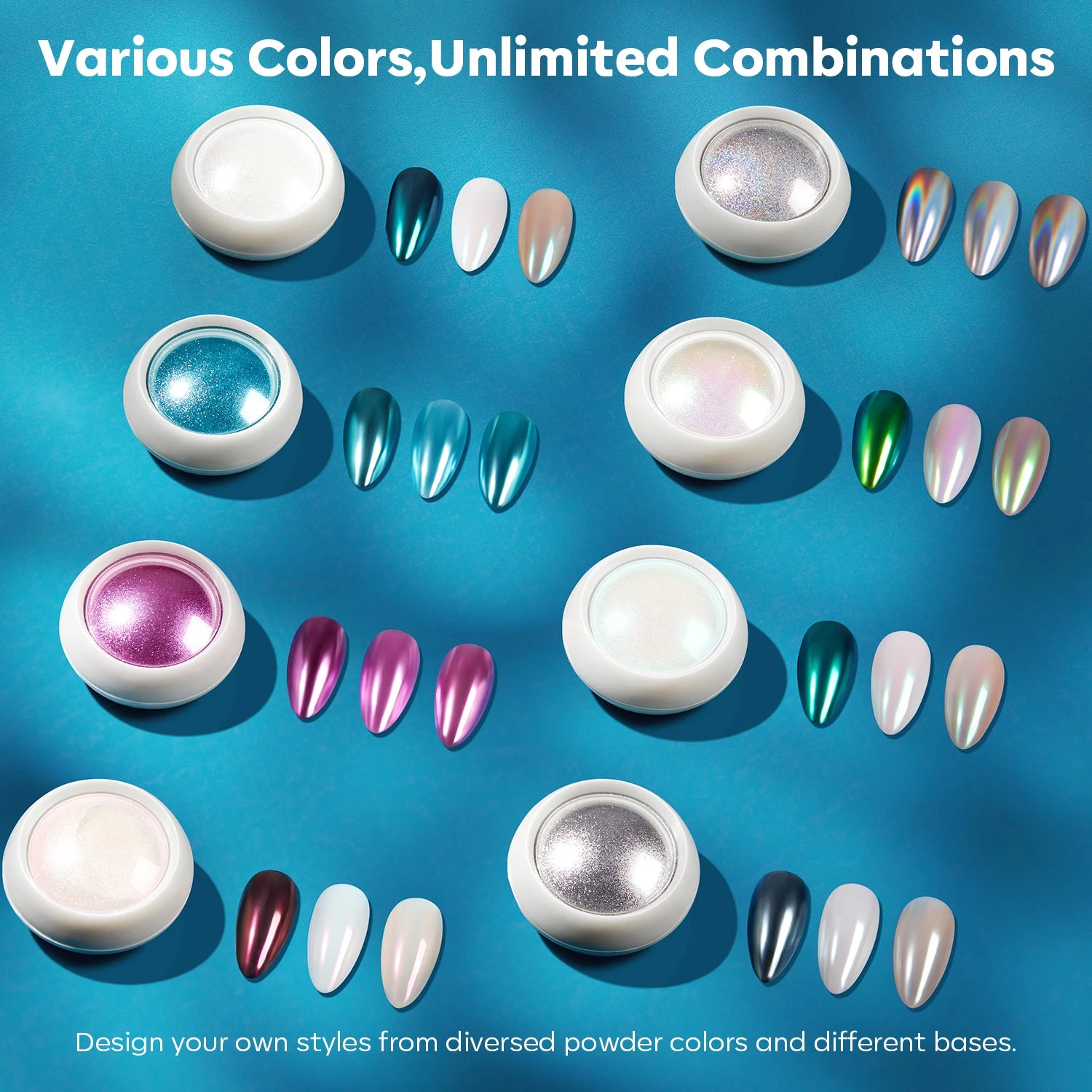 - Wide Usage: The chrome nail powder can be used with gel nail polish and builder gel. The gradient effect will change with different background colors. Mix and match with the colored nail polish products, you could create thousands of different effects.