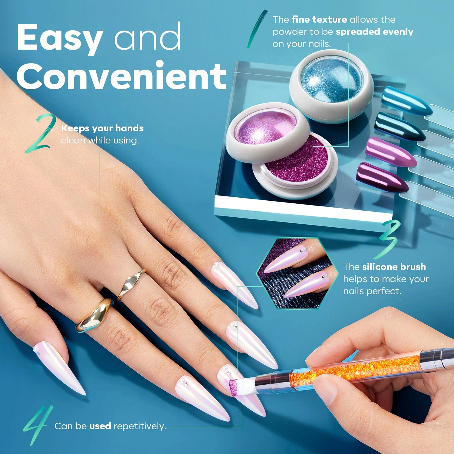 - Easy Application: No special nail art skill is required, don’t worry that you are unable to apply the nail pigment powder to your nails successfully. Following our instructions, the chrome nail powder is easy to be applied on natural or artificial nails.