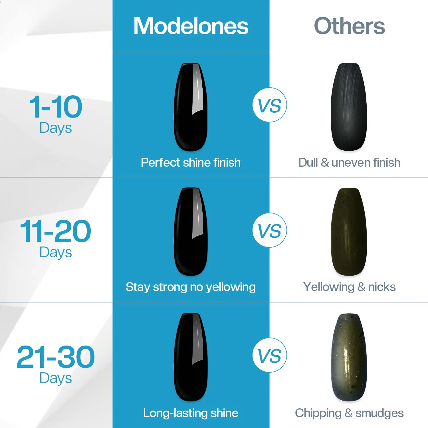 Safe for mani-pedi: All about Modelones glitter nail top coats are from harmless natural resins, 11 toxin free and low odor; The top coat ingredients without any harmful chemicals, safe for nails and skin, environmentally friendly, the trusted choice for every mani-lovers.