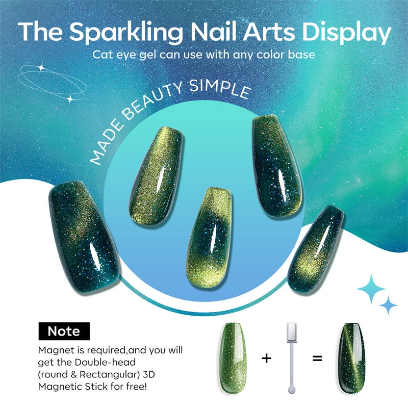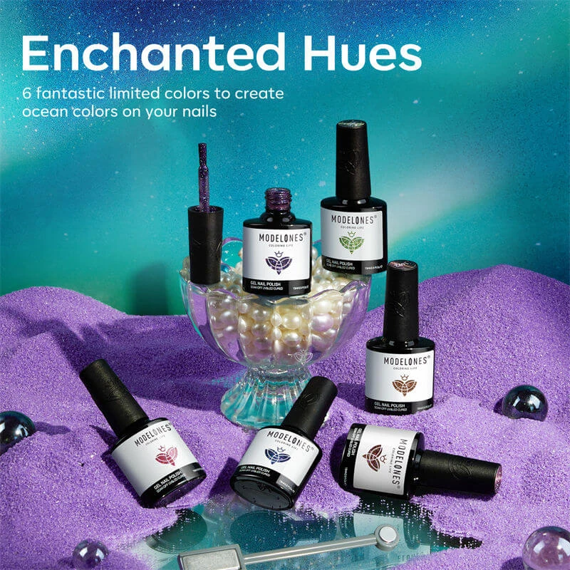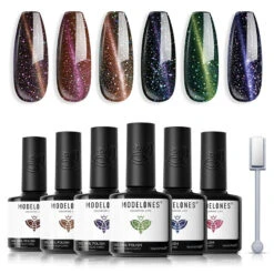 Explore the celestial beauty of the night sky and bask in the radiance of the stars with our Celestial Shimmer 6-color cat’s eye gel polish set. Each of these mesmerizing shades will take you on a cosmic journey. From the deep Nebula Glint to the sparkling Mauve Mirage, every hue is infused with the magic of a cat’s eye, leaving your nails shimmering like constellations.
