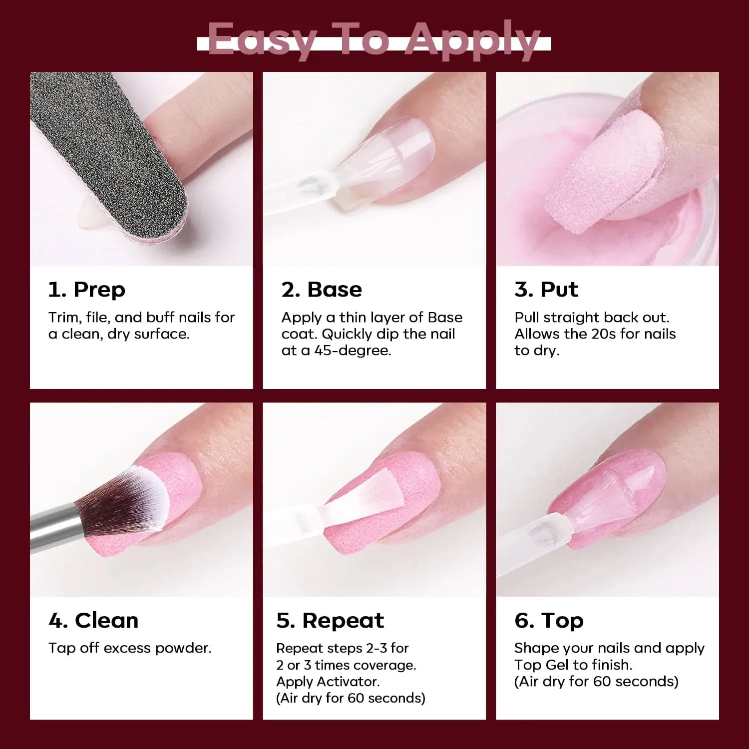 Step 2: Base Coat – Apply a thin Base Coat then dip into the shade of choice at a 45 degrees and tap off the excess dipping powder