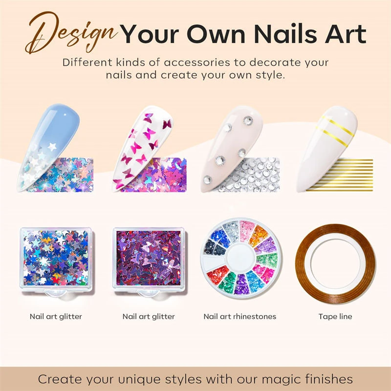 Versatile: For nail coloring, nail extension, nail enhancement, and can mix glitters & stick nail accessories.