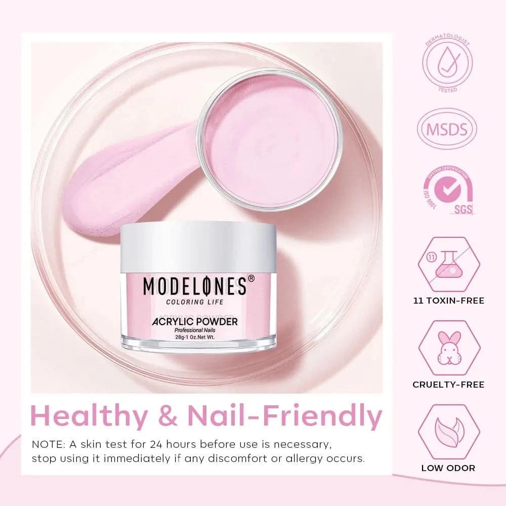 The MODELONES’ Acrylic Powder provides odor-free sculptured nail services with a complete shade range & fine polymer powder texture.
