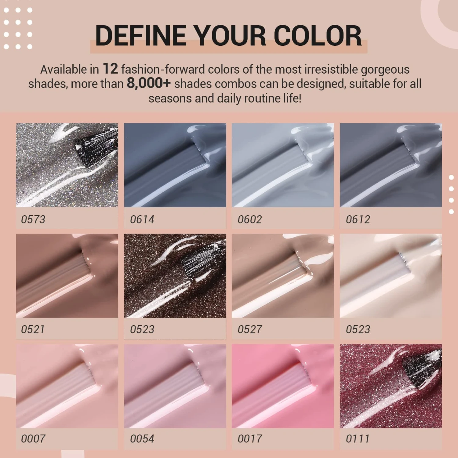 Gentle nude – 36Pcs 12 Colors Nail Gel Polish Kit 【US ONLY】