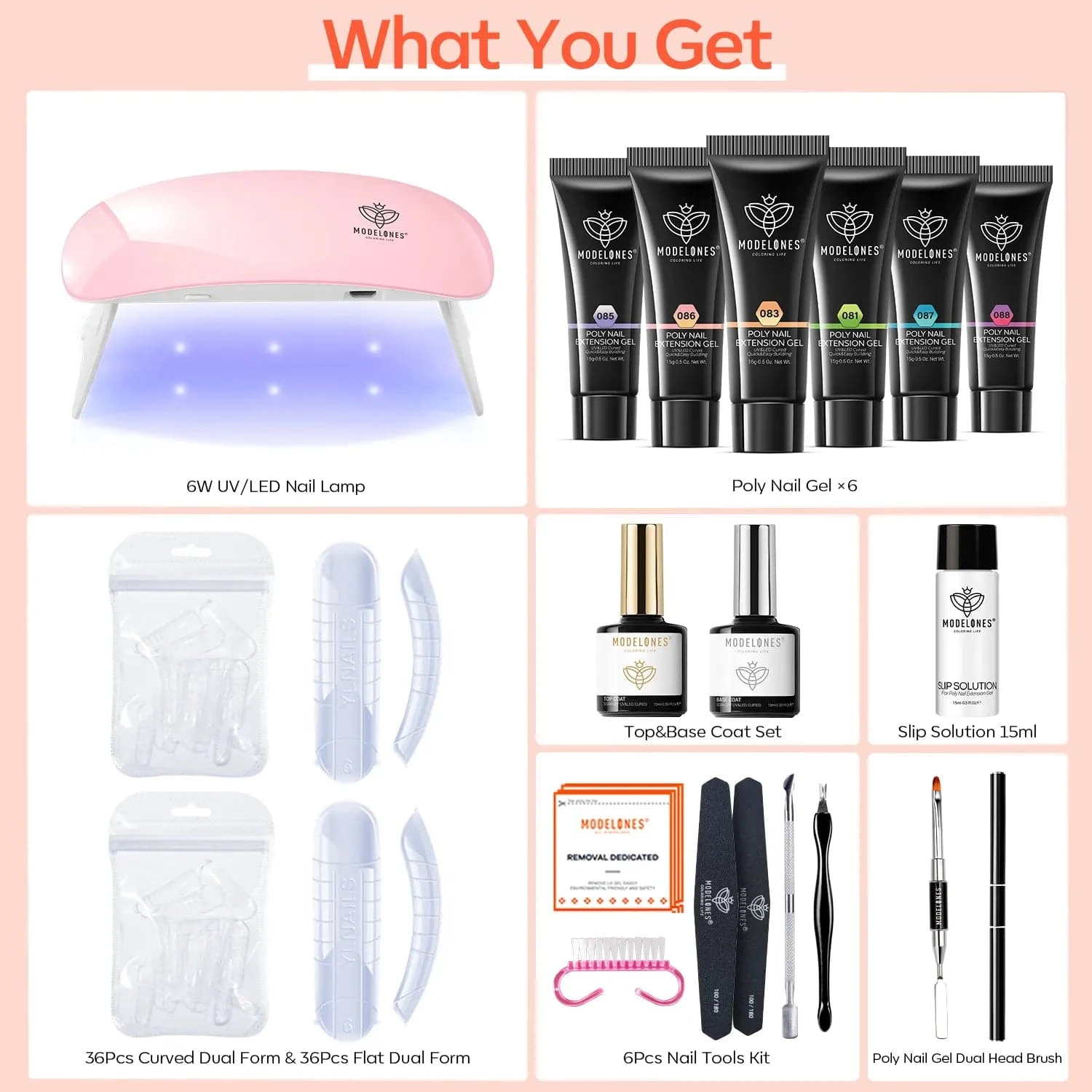 This “Glow in the Dark ” kit of Luminous Poly Nail Extension Gel Kit contains 6 shades of popular and trendy colors. They can present a luminous effect at night after absorption of UV lights(sunlight). With the rich color formula and lightweight texture, you can easily have ALL your favorite colors in one set, with No more struggle of choosing.