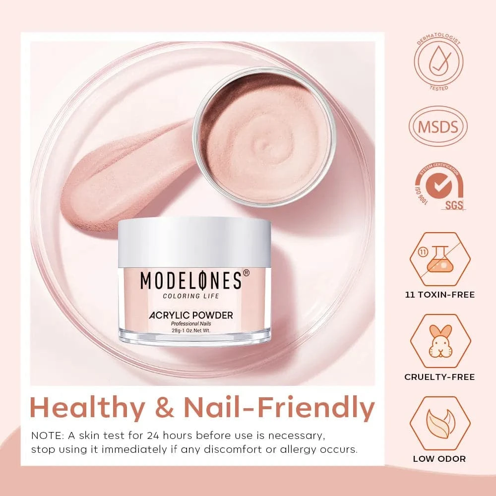 The MODELONES’ Acrylic Powder provides odor-free sculptured nail services with a complete shade range & fine polymer powder texture.