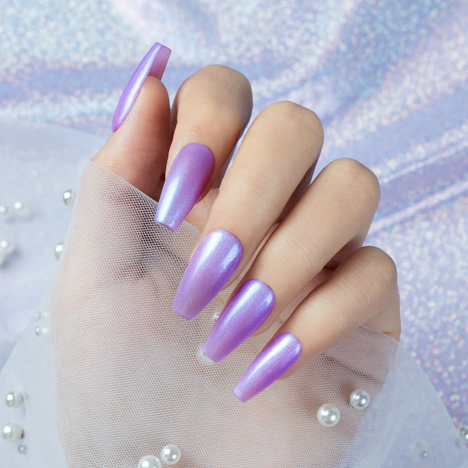 Let your nails dance with the allure of the night in Lavender Nocturne gel polish. This deep lavender shade, like a starry nocturnal sky, adds a touch of mystery and elegance to your fingertips. As light gently touches your nails, you’ll be enchanted by the delicate play of colors and the subtle cat-eye effect, creating an atmosphere of enchantment and intrigue.