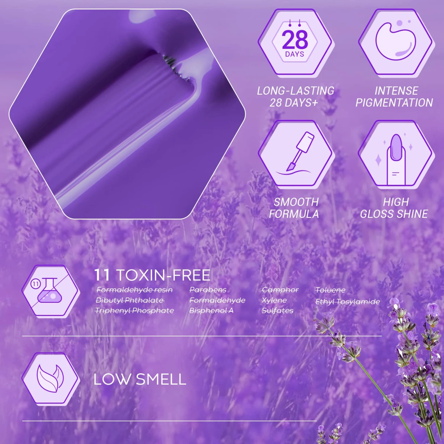 This ”Lilac Obsessions“ set of soak-off gel polish contains 6 shades of popular and trendy colors, suitable for all seasons and daily routine life.
