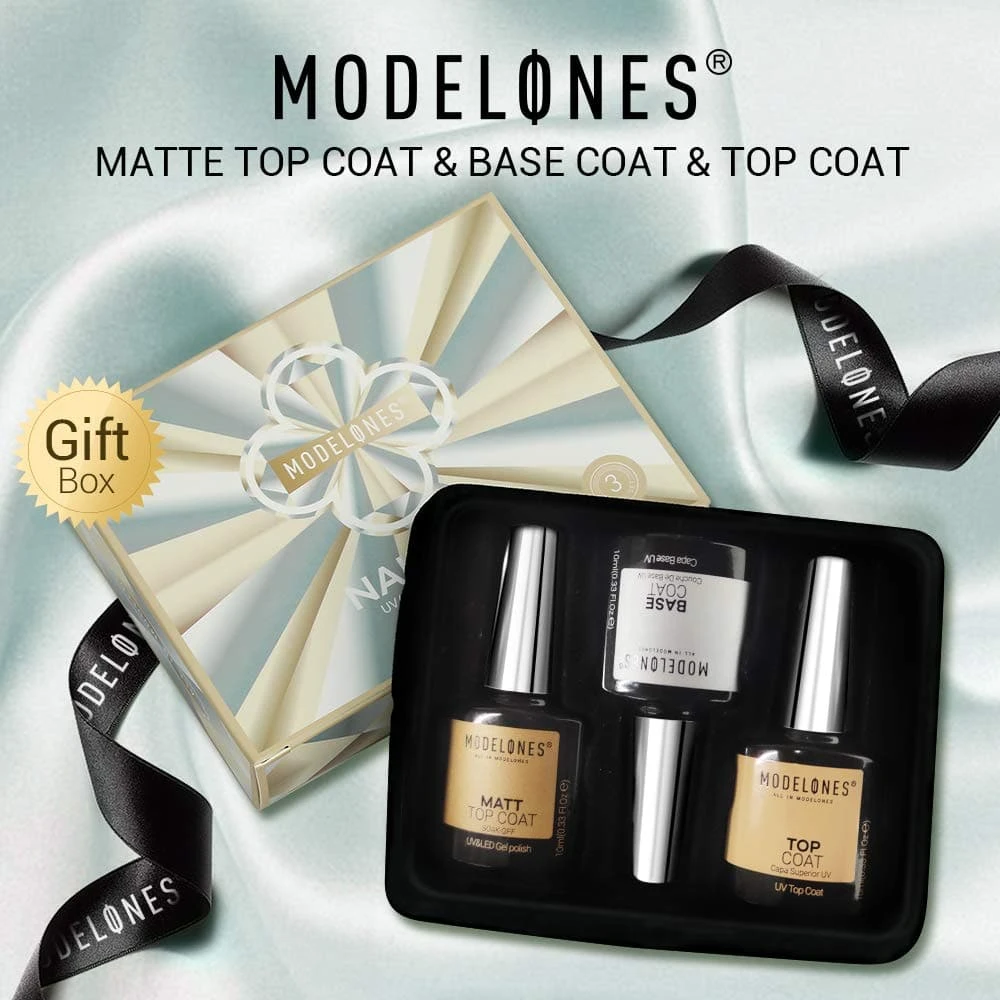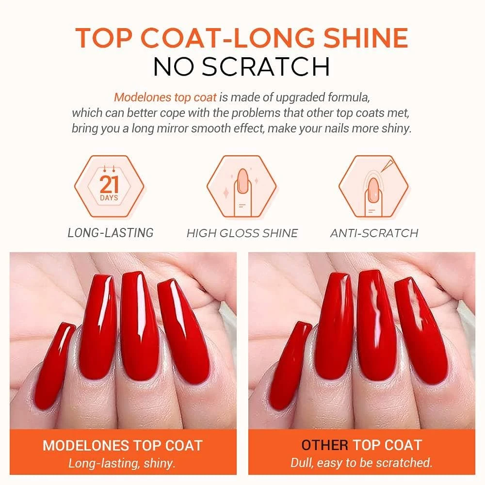 Prevent nail staining and manicures lasting manicures with Modelones Nail Polish Base Coat and Top Coat Bundle.