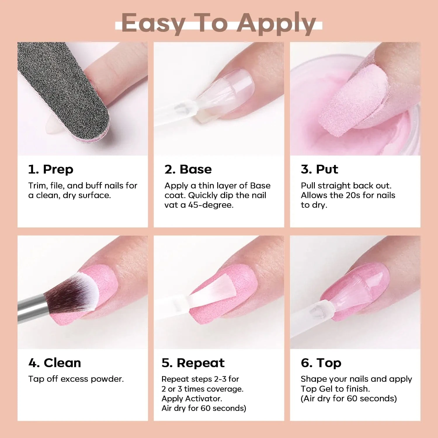 Step 2: Base Coat – Apply a thin Base Coat then dip into the shade of choice at a 45 degrees and tap off the excess dipping powder