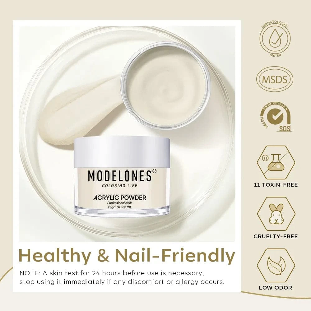 The MODELONES’ Acrylic Powder provides odor-free sculptured nail services with a complete shade range & fine polymer powder texture.