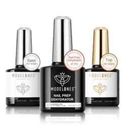 Modelones 10ml Nail Dehydrator with Top & Base Coat Set. Using this Nail Starter Kit can extend the effect of nail products, and keep your nail art long-lasting for over 28 days.