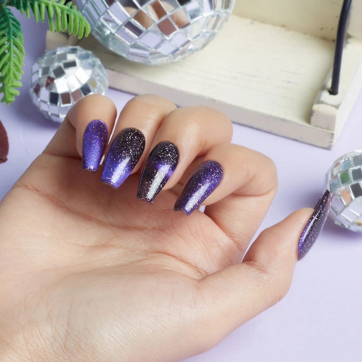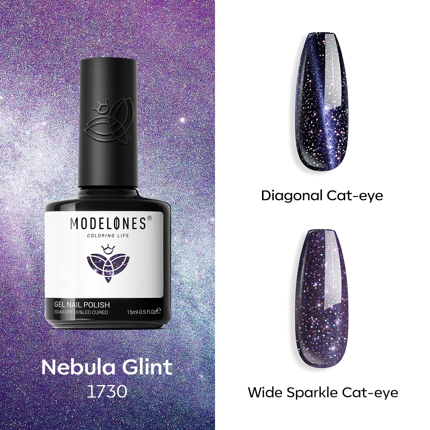 Explore the cosmic beauty of Nebula Glint, a cat-eye gel polish in a rich grape-purple shade. Like distant galaxies, the cat-eye effect reveals hidden depths and a radiant shimmer. With Nebula Glint, your nails become a celestial canvas, capturing the enchanting allure of the universe and adding a touch of cosmic elegance to your manicure.