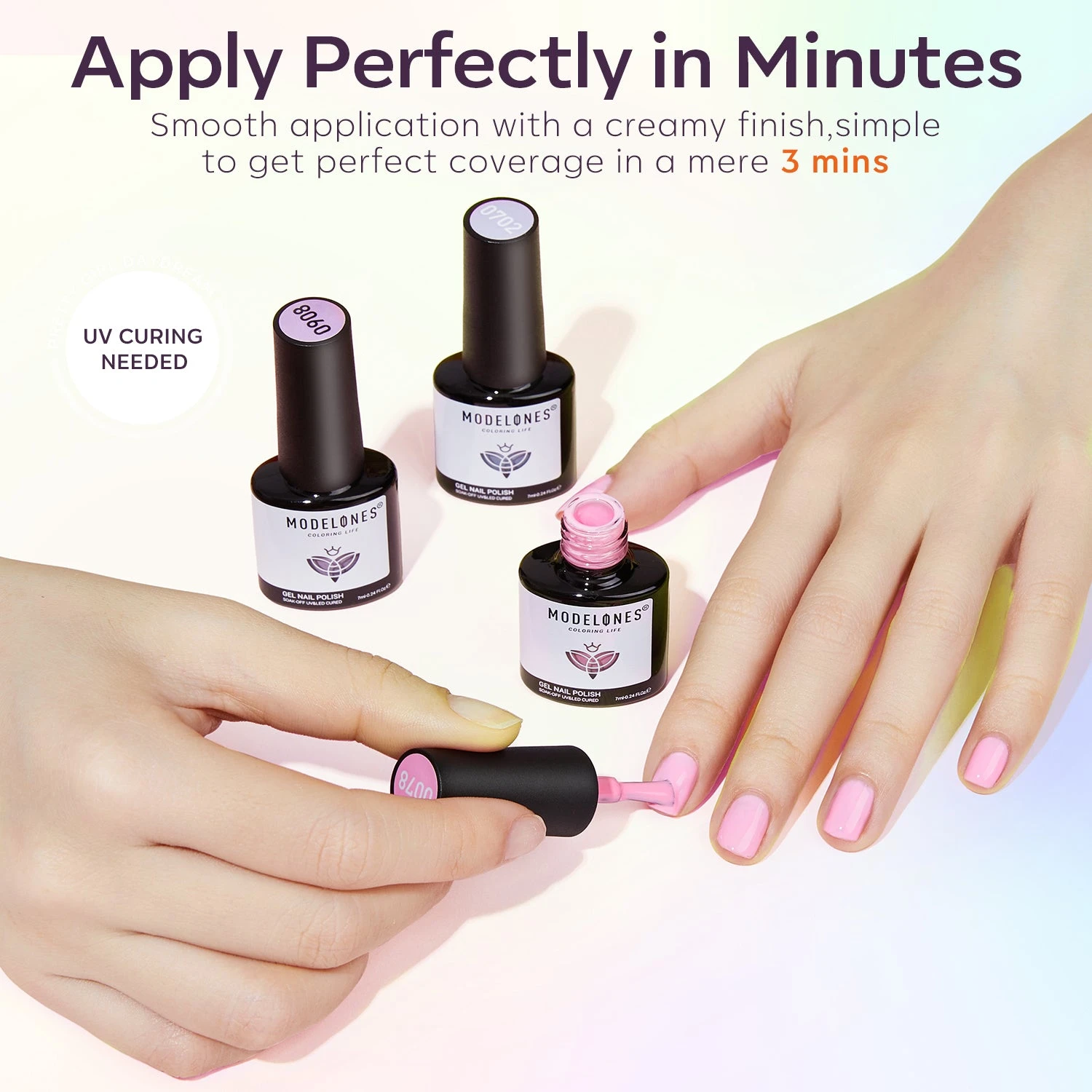 Fast-drying: Cures in 30 seconds under LED lamp or 60 seconds under UV lamp.