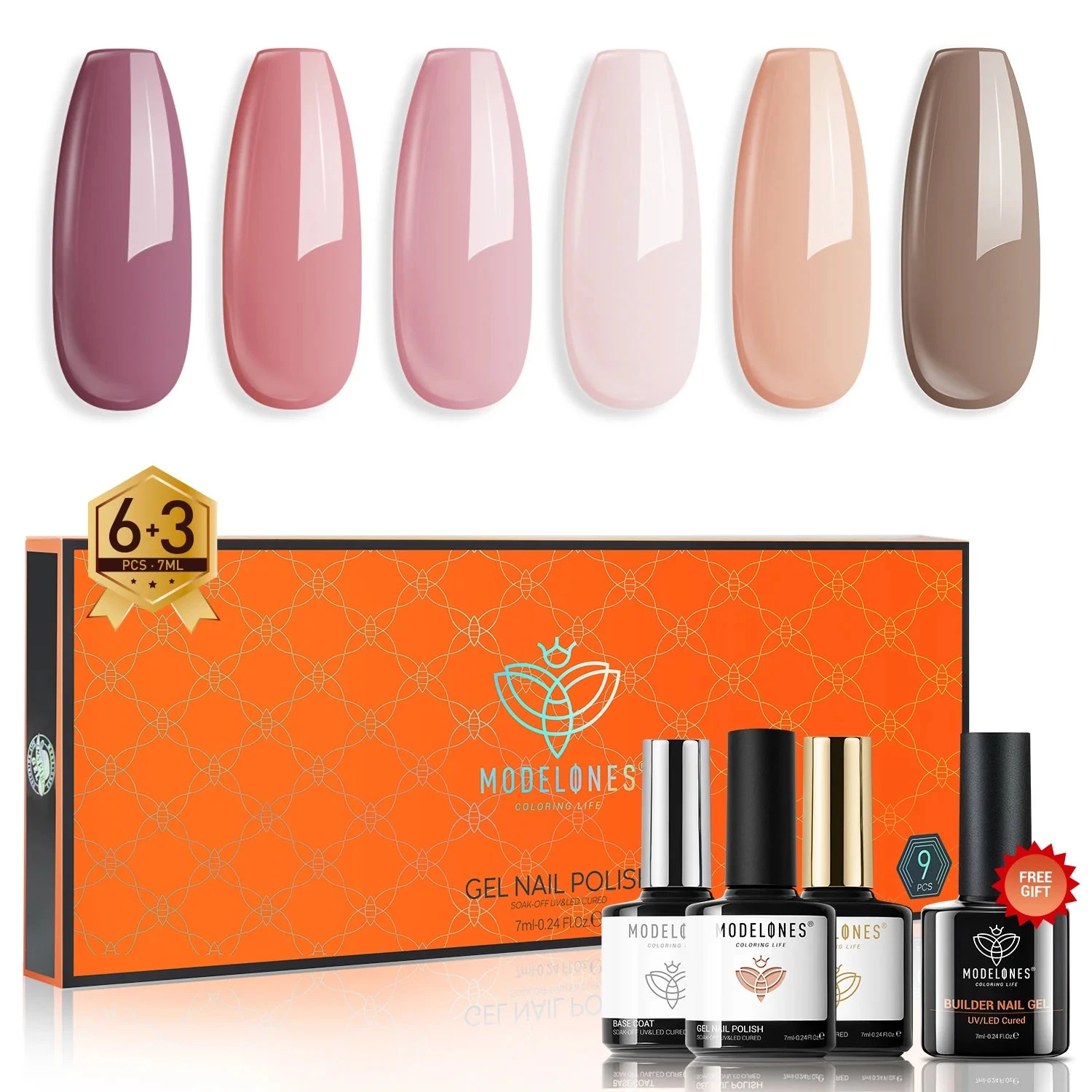 Nude Pink – 9Pcs 6 Colors Gel Nail Polish Kit