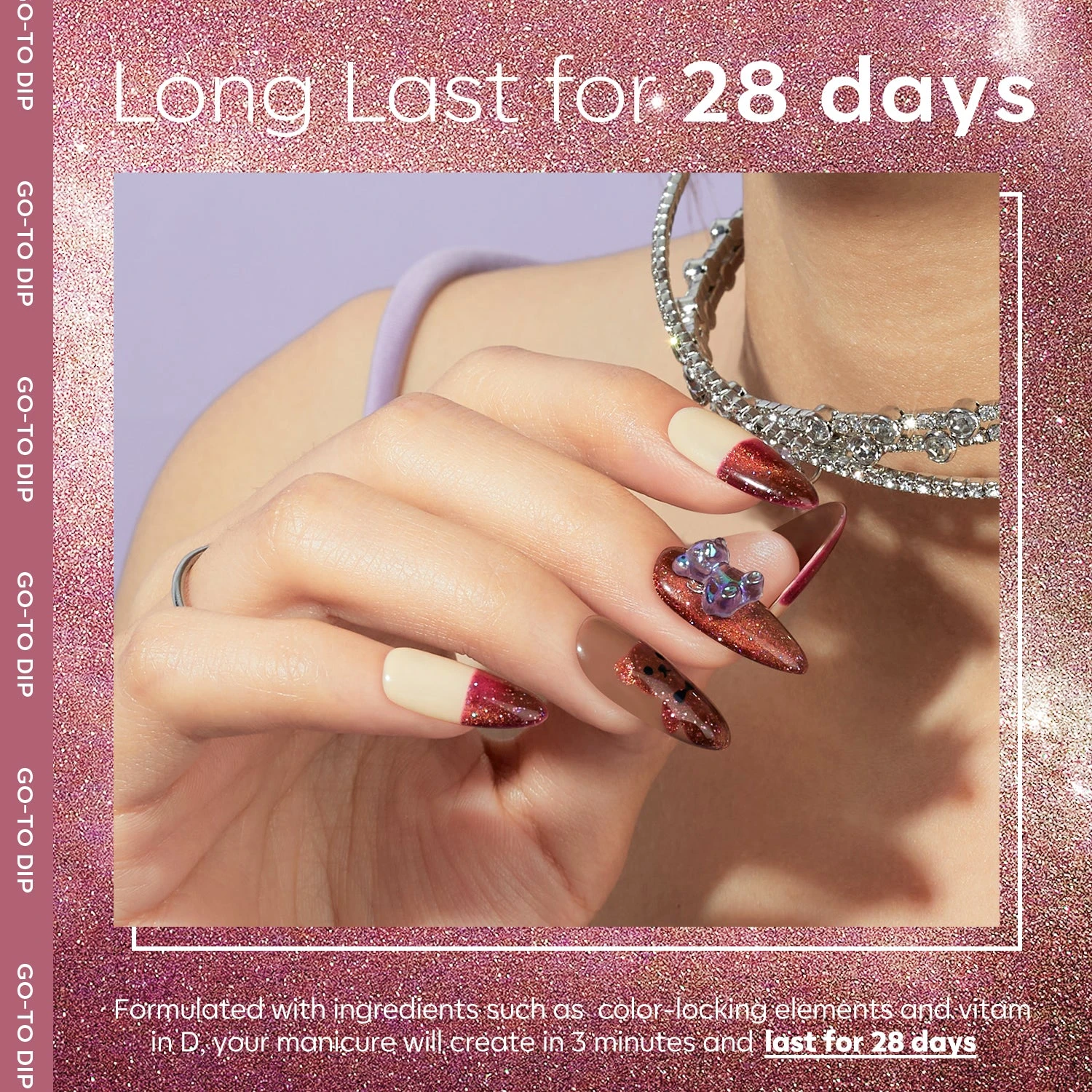 Long-lasting:Â Up to 3 weeks+ of stay-true color and shine-intense wear.