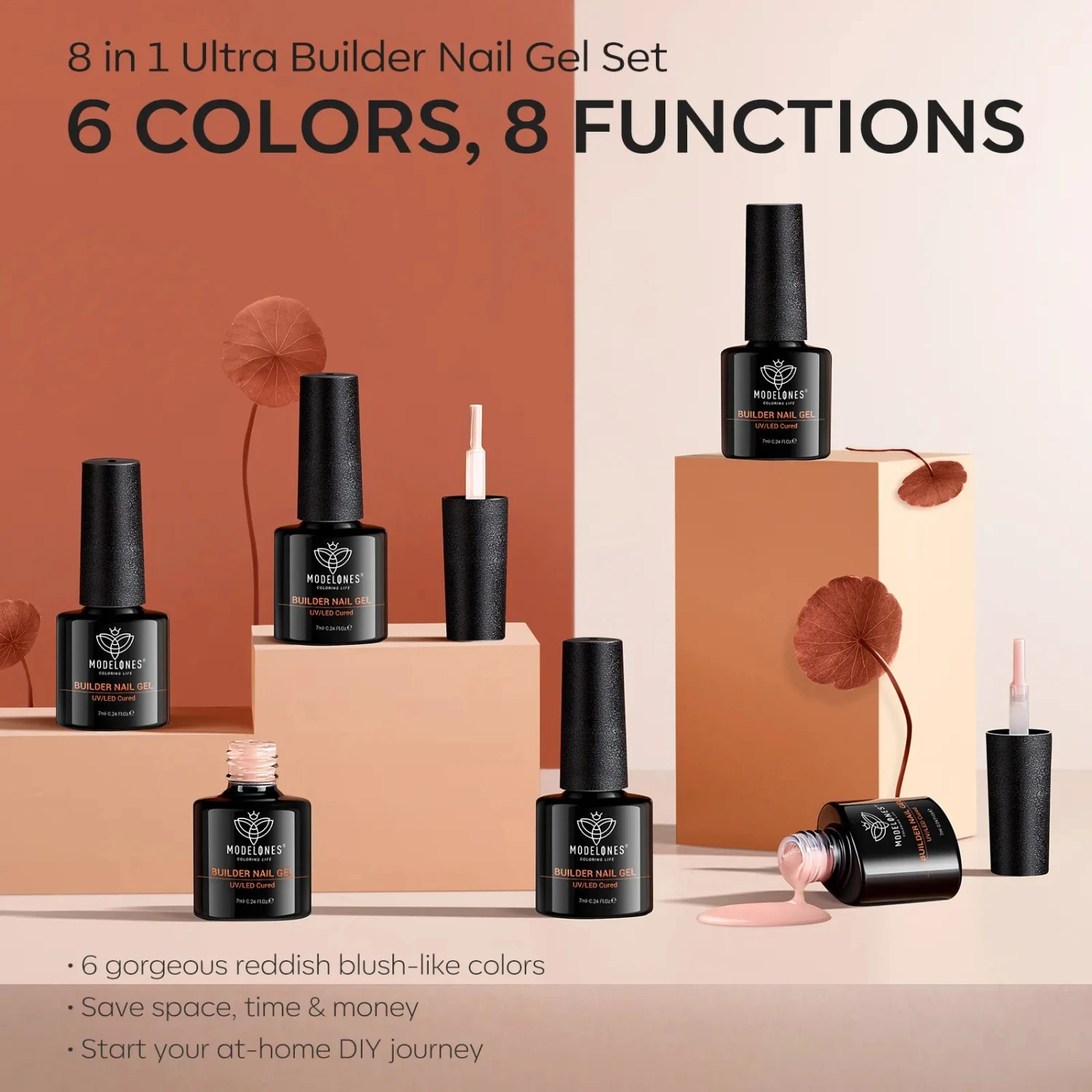 Our Breathable Reddish Nude Builder Nail Gel Set is perfect for achieving a wide range of looks, with 6 shades and 8-in-1 versatility. The 7 ml builder gel creates a long-lasting, beautiful manicure that can remain chip-free for up to 14 days.