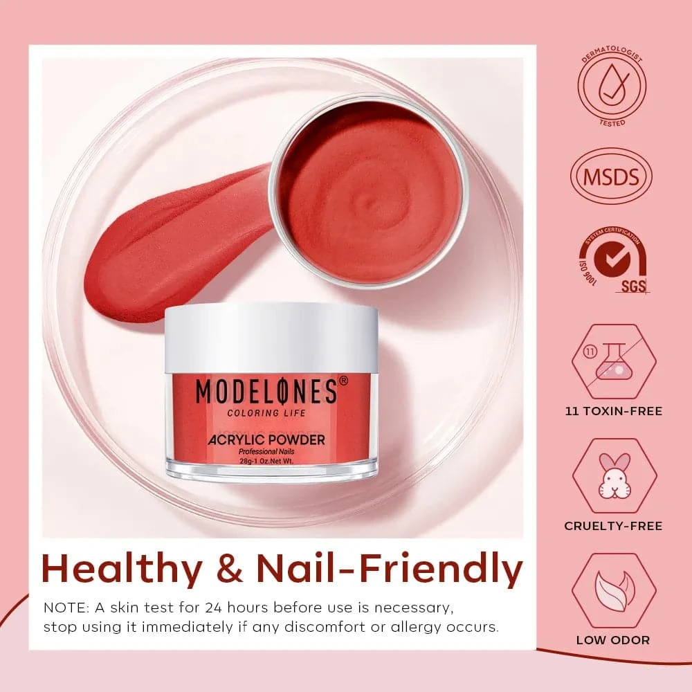 The MODELONES’ Acrylic Powder provides odor-free sculptured nail services with a complete shade range & fine polymer powder texture.
